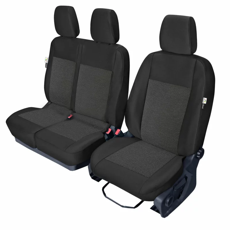 Realizate din poliester 100% cu strat de spuma PUR, husele contribuie la confort, protejeaza impotriva uzurii, murdariei si petelor si sunt potrivite pentru autoutilitare folosite intens. Designul in nuante negru/gri se integreaza usor in interiorul masinii si ofera un aspect practic si modern.