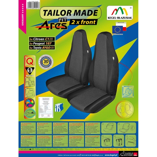 Huse scaune auto Ares Super AirBag pentru Toyota Aygo 1, Citroen C1 I, Peugeot 107 set huse auto Fata marca Kegel