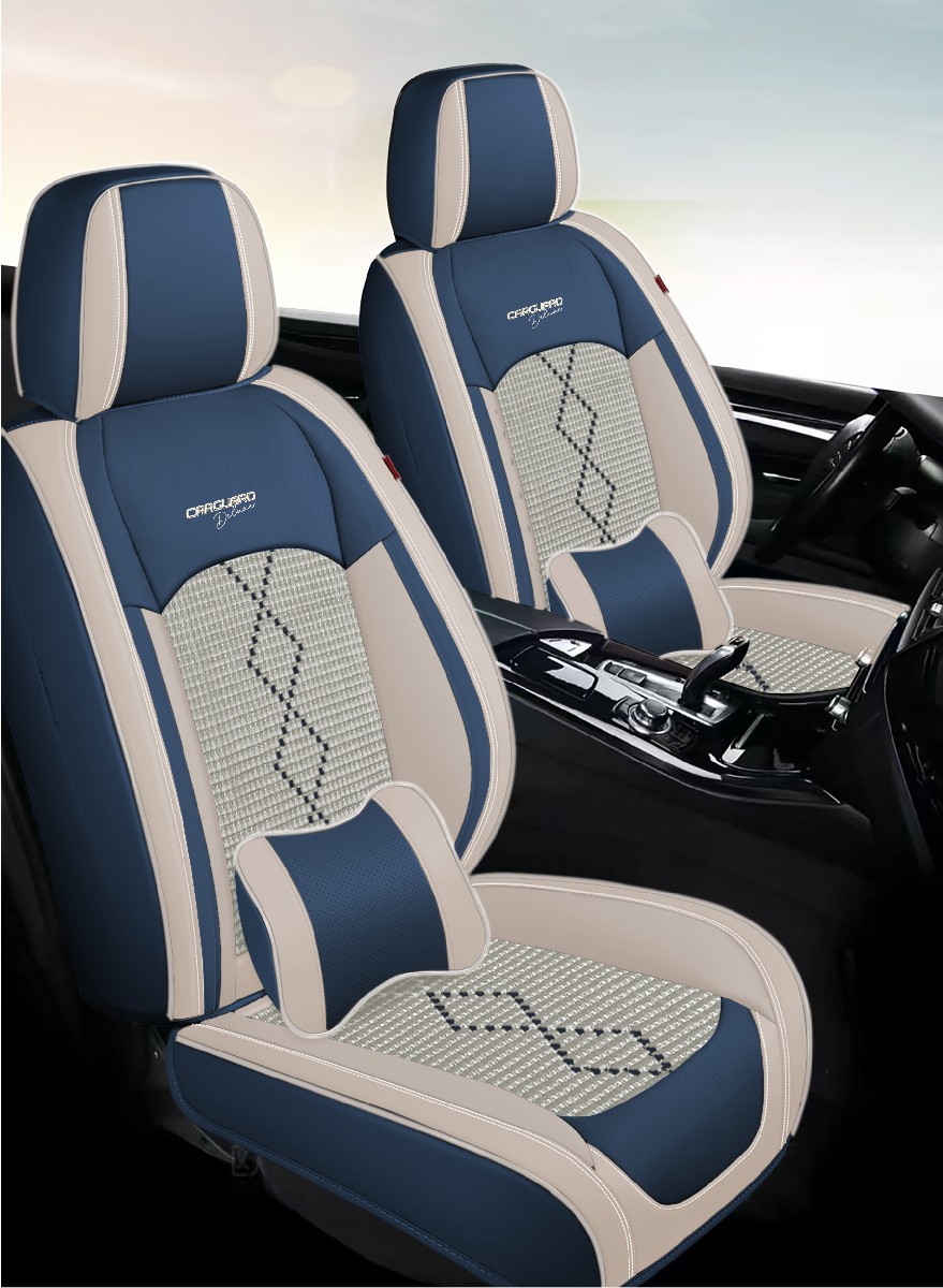 Huse scaune auto Carguard Deluxe 5 locuri, piele eco perforata, albastru-alb