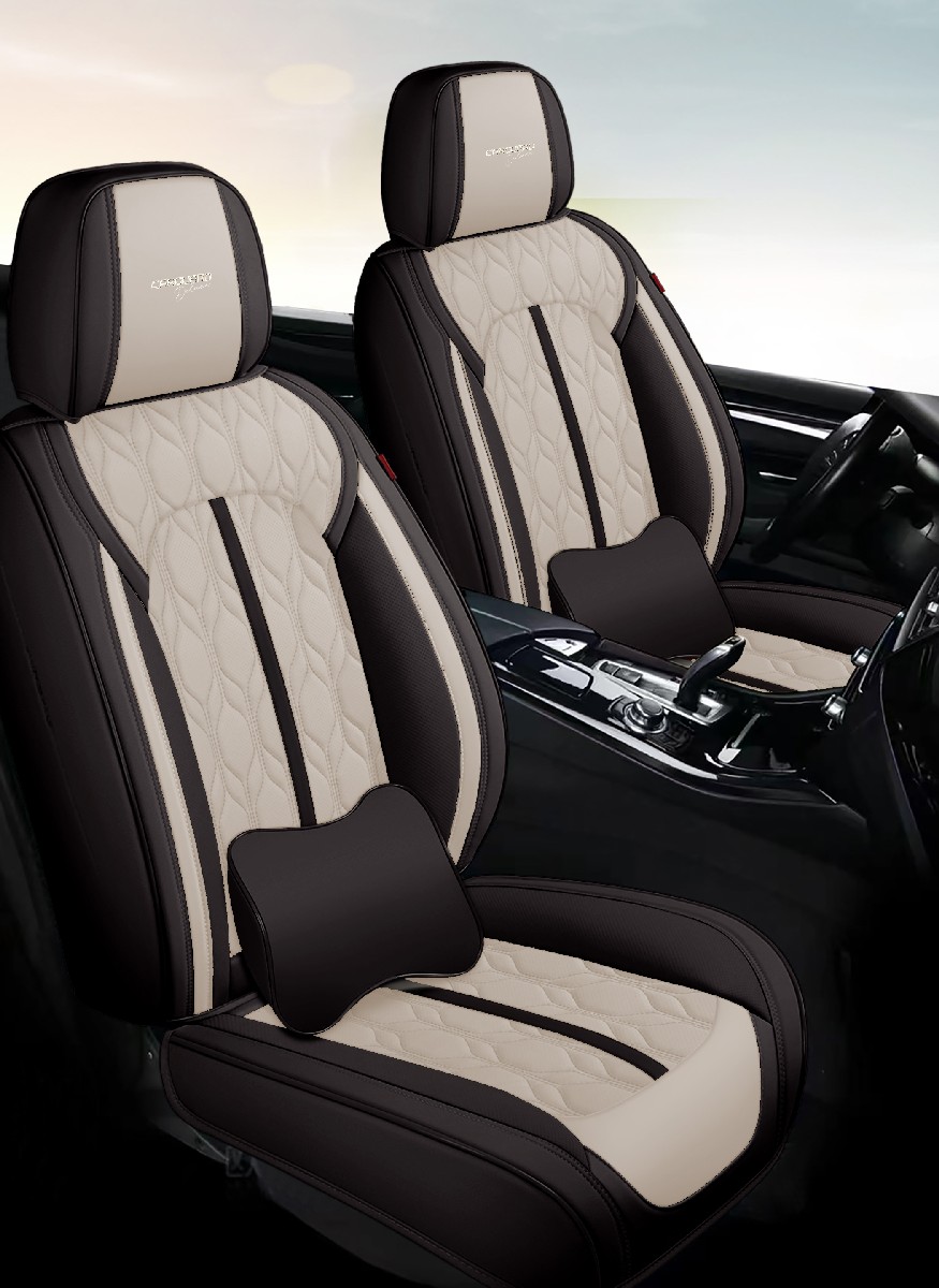 Huse scaune auto premium Carguard Deluxe 5 locuri, piele eco perforată negru-crem