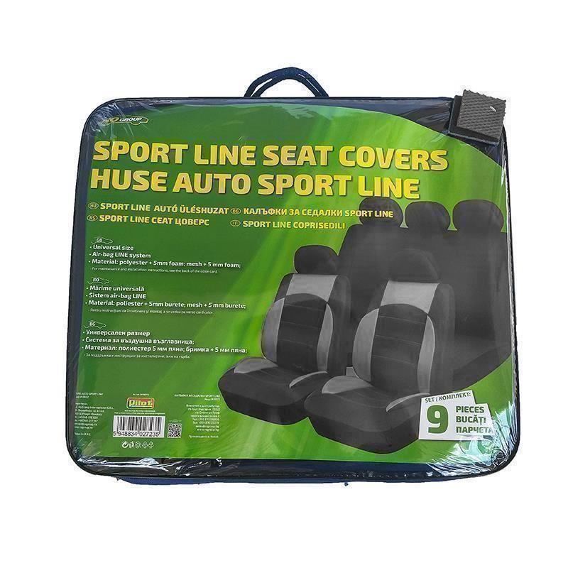 Huse scaune auto RoGroup Sport Line gri pentru bancheta rabatabila, 9 piese