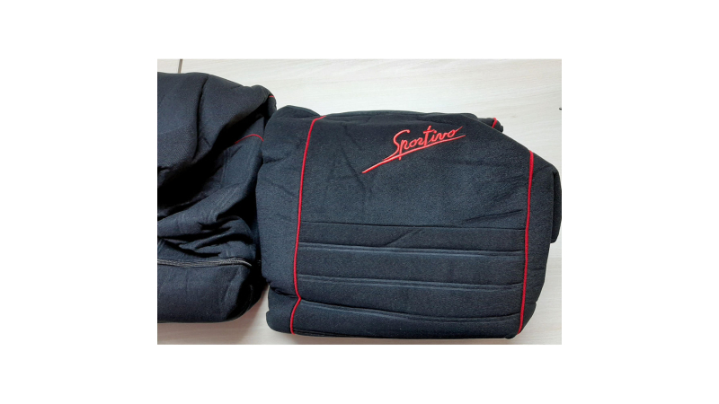 Husa de la bancheta din spate are doua fermoare pentru autoturismele la care se rabateaza bancheta partial .