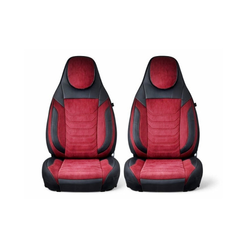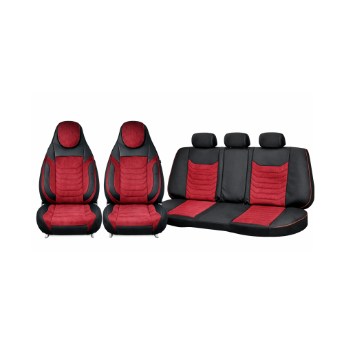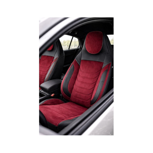 Huse scaune auto universale fractionate Premium cu tetiera fata incorporata negru cu visiniu Cod: HNG-C509-4 Automotive TrustedCars