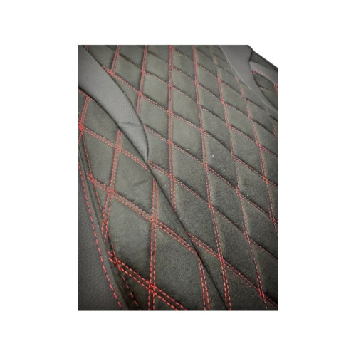 Huse scaune auto universale fractionate Premium compatibile SUV si Limuzine negru cusatura rosie