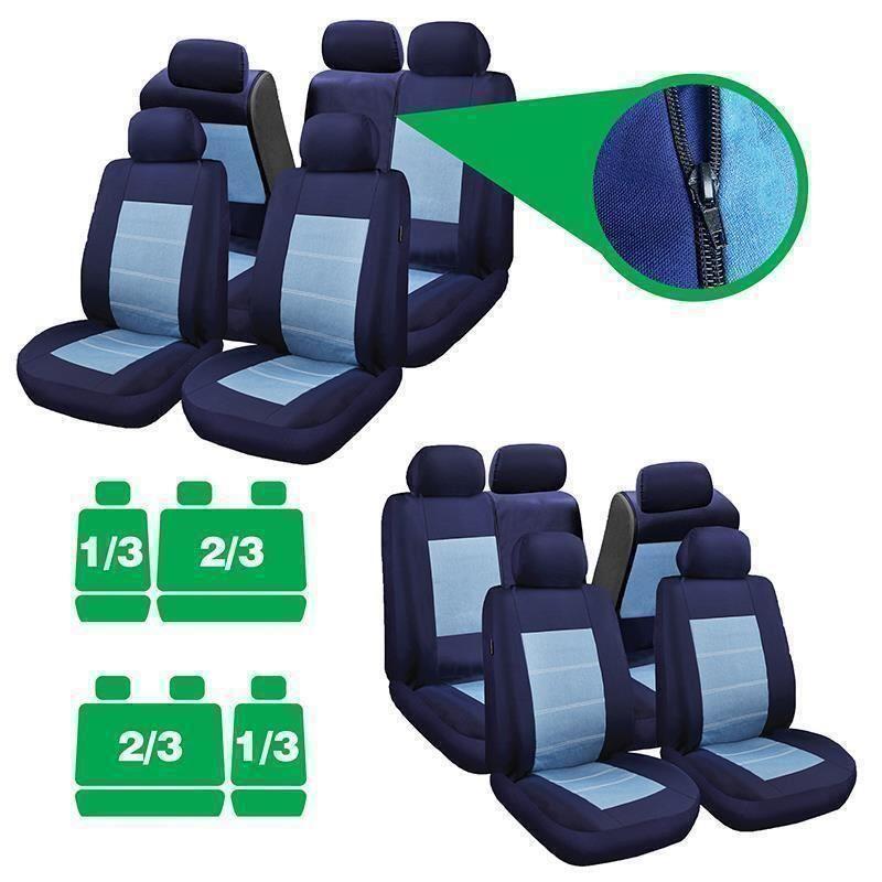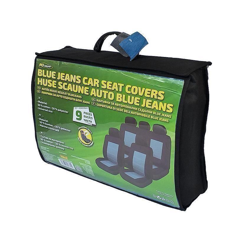 Huse scaune auto universale RoGroup Blue Jeans, 9 piese, cu fermoare