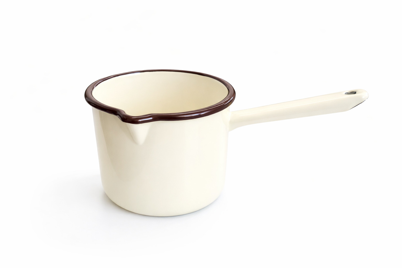 Ibric cilindric emailat 1L crem, gradat, cu maner ergonomic