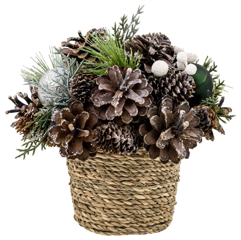 Ikebana decorativă de Crăciun naturală cu globuri verzi, 19x19 cm