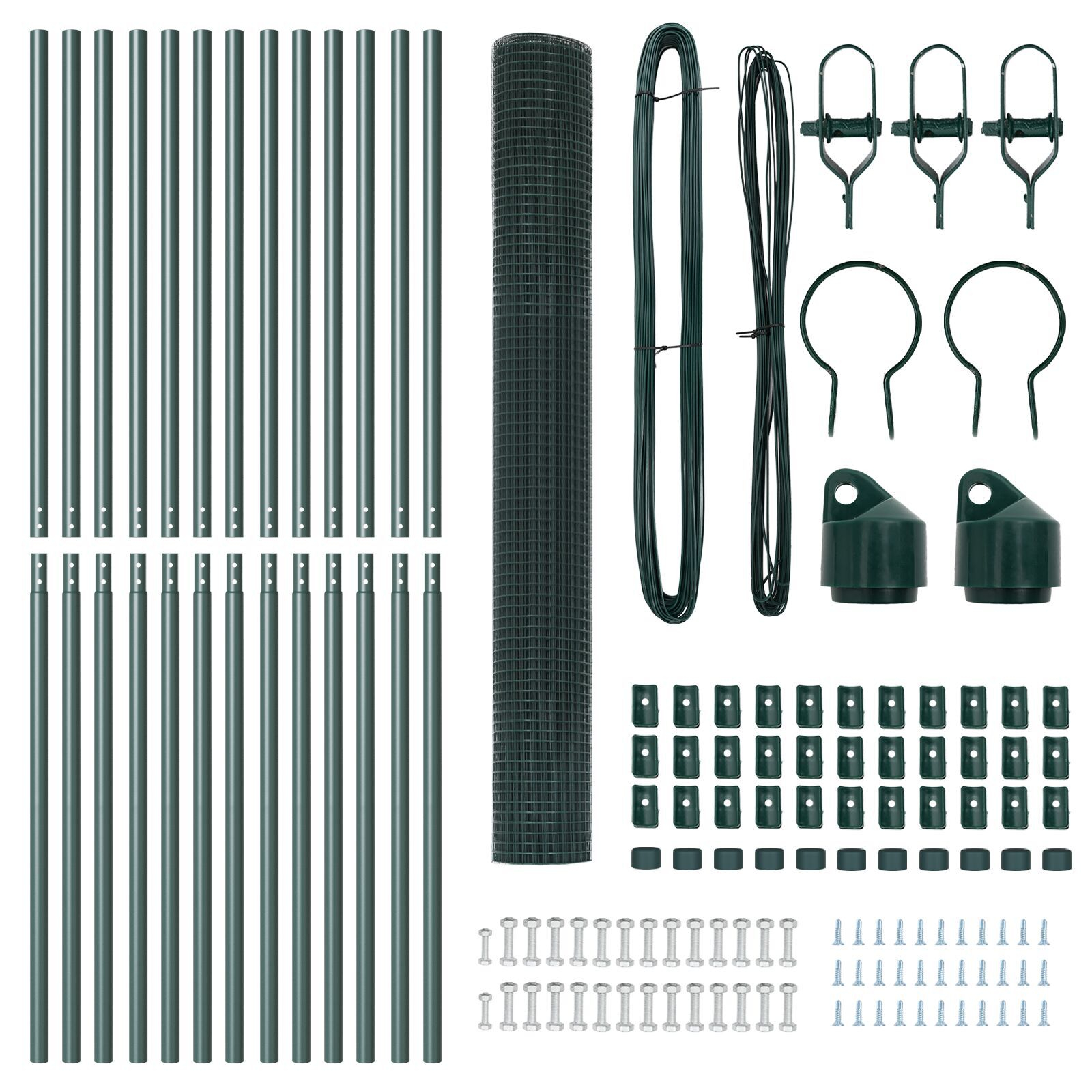 Împrejmuire din Sârmă Sudată cu 13 Stâlpi Verde 1.5x25 m Oțel GartenMobel Dekor