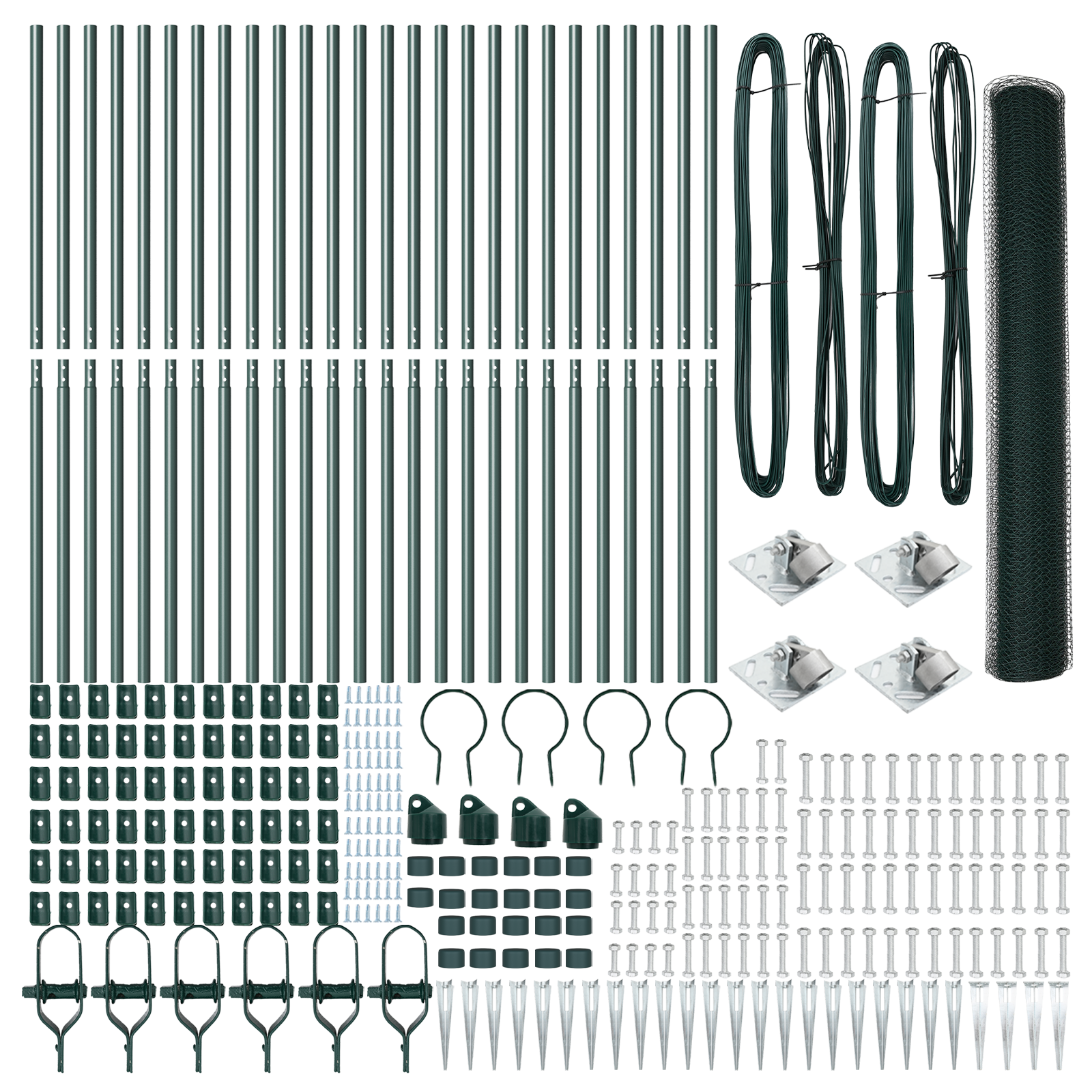 Împrejmuire Hexagon Verde 1.4x50 m Oțel, Stâlpi de împrejmuire cu cuie 13 buc Ø32 mm 160 cm Oțel galvanizat GartenMobel Dekor