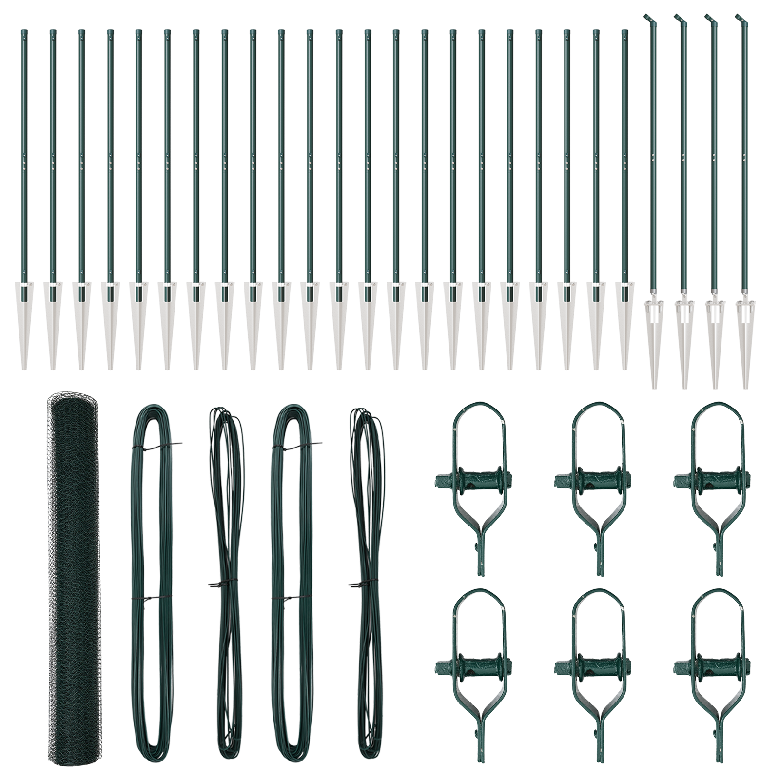 - KIT COMPLET: Acest kit de împrejmuire are tot ce îți trebuie, inclusiv stâlpi de împrejmuire, plasă, ancore cu vârf și sârmă de tensiune, asigurând o instalare fără stres.