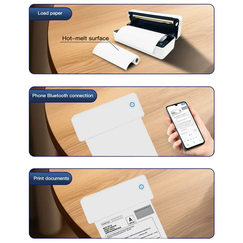 Imprimanta accepta hartie termica A4/A5, hartie continua, black label paper sau tattoo paper, cu o latime maxima de 216 mm si o grosime a hartiei de 60–150 μm. Taierea hartiei se face manual, iar structura compacta face ca procesul sa fie simplu si rapid.