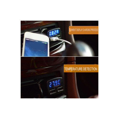 Încărcător auto 3 în 1 cu voltmetru, termometru și 2 porturi USB 3.1A