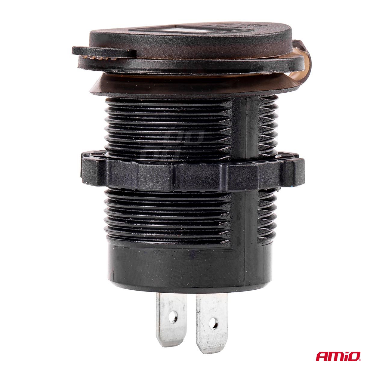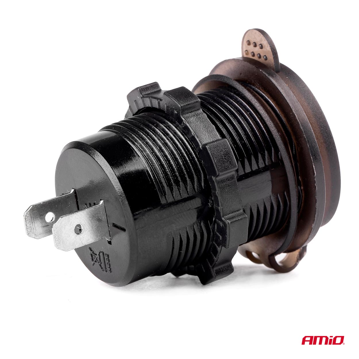 Incarcator auto AMIO, rezistent la apa cu voltometru digital 2xUSB 12/24V MOD-06