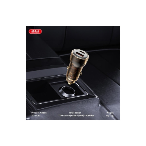 Incarcator auto USB 60W PD USB TYPE-C: PD 30W + USB-A 30W Cod: XO-CC60 Automotive TrustedCars