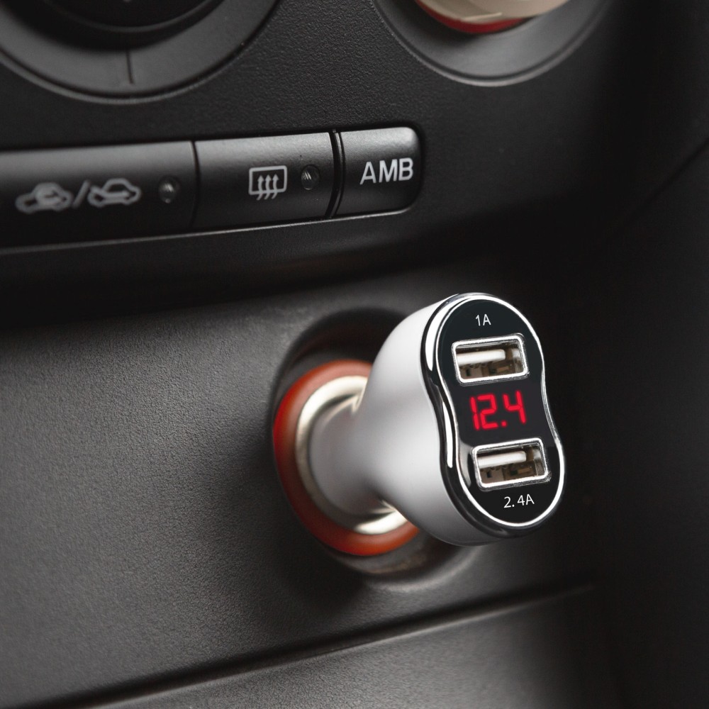 Priză USB și contor de tensiune care pot fi conectate la o brichetă de mașină. Afișajul LED ascuns între două porturi USB arată tensiunea curentă. Marginea cromată oferă un aspect elegant, astfel încât să arate grozav în interiorul oricărei mașini. Portul USB dublu permite încărcarea simultană a două dispozitive.
