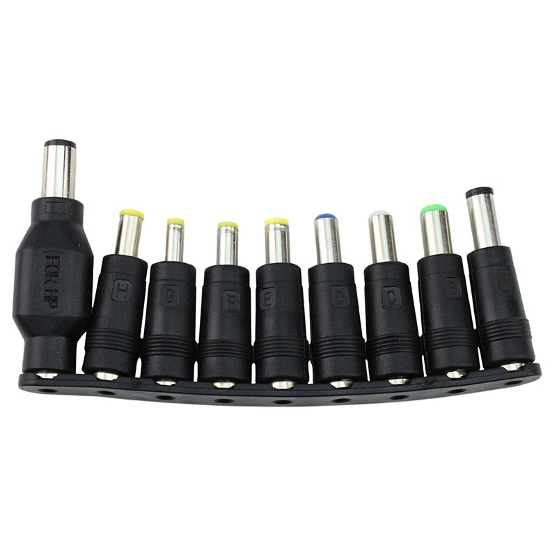 - Conectori (diametru ext. x int.): 6.3x3.0, 6.0x1.4, 5.5x2.5, 5.5x2.1, 5.5x1.5, 5.0x1.4, 4.8x1.7, 4.0x1.7 mm