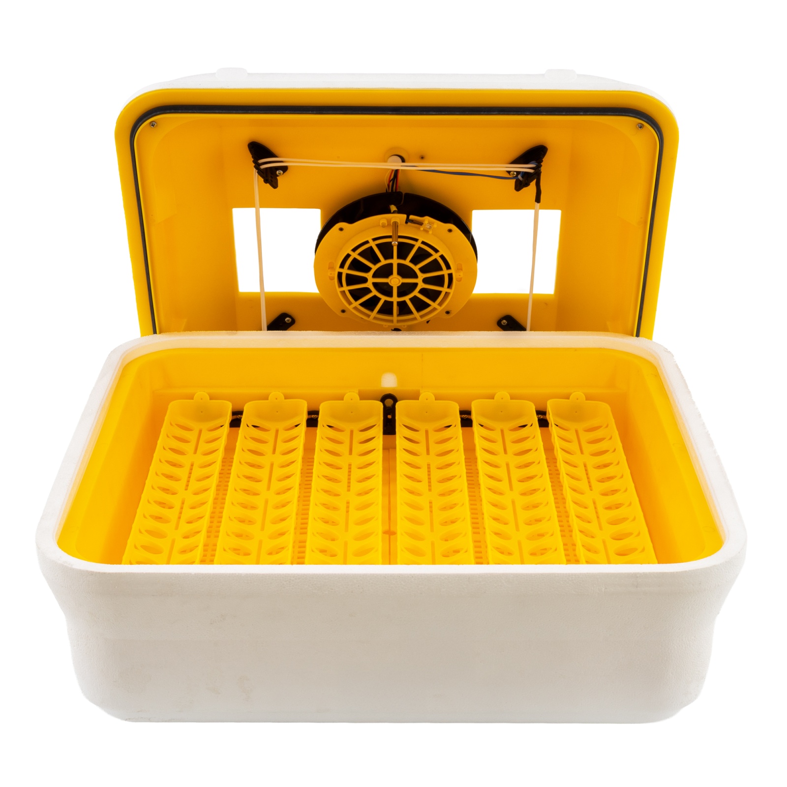 - Capacitate: 88 ouă găină / 230 ouă prepeliță / 77 ouă curcan / 40 ouă gâscă