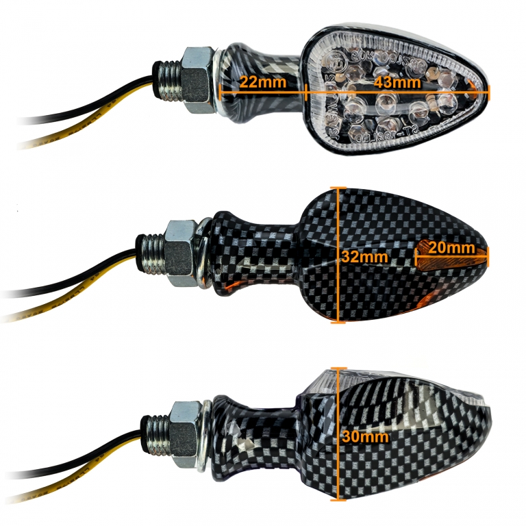 Indicatori LED Mini pentru motocicletă, personalizați, eleganți, stil carbon, cu E-Mark