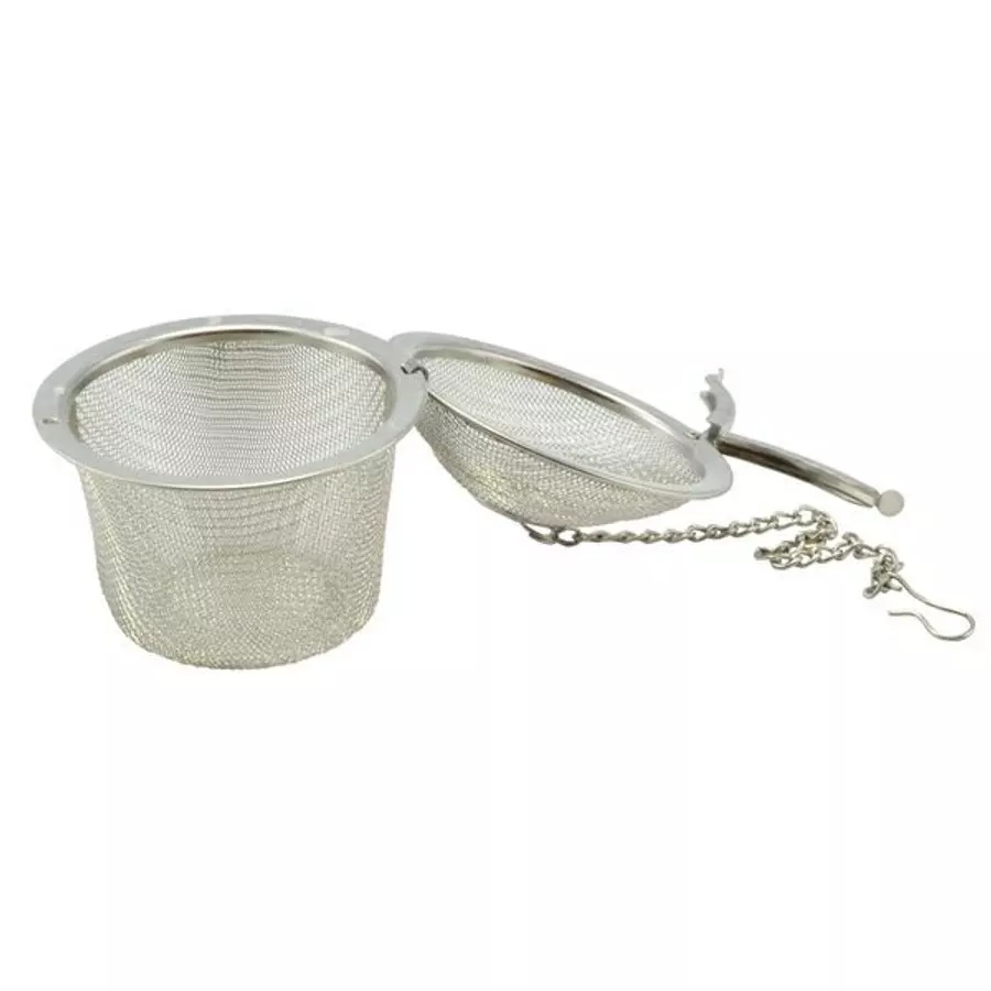 Bucura-te de arome curate si intense cu acest infuzor pentru ceai tip minge, ideal si ca filtru pentru condimente in supe sau la vin fiert. Plasa fina din otel inoxidabil retine frunzele si mirodeniile, iar lantul cu carlig ajuta la prinderea usoara de oala sau cana.