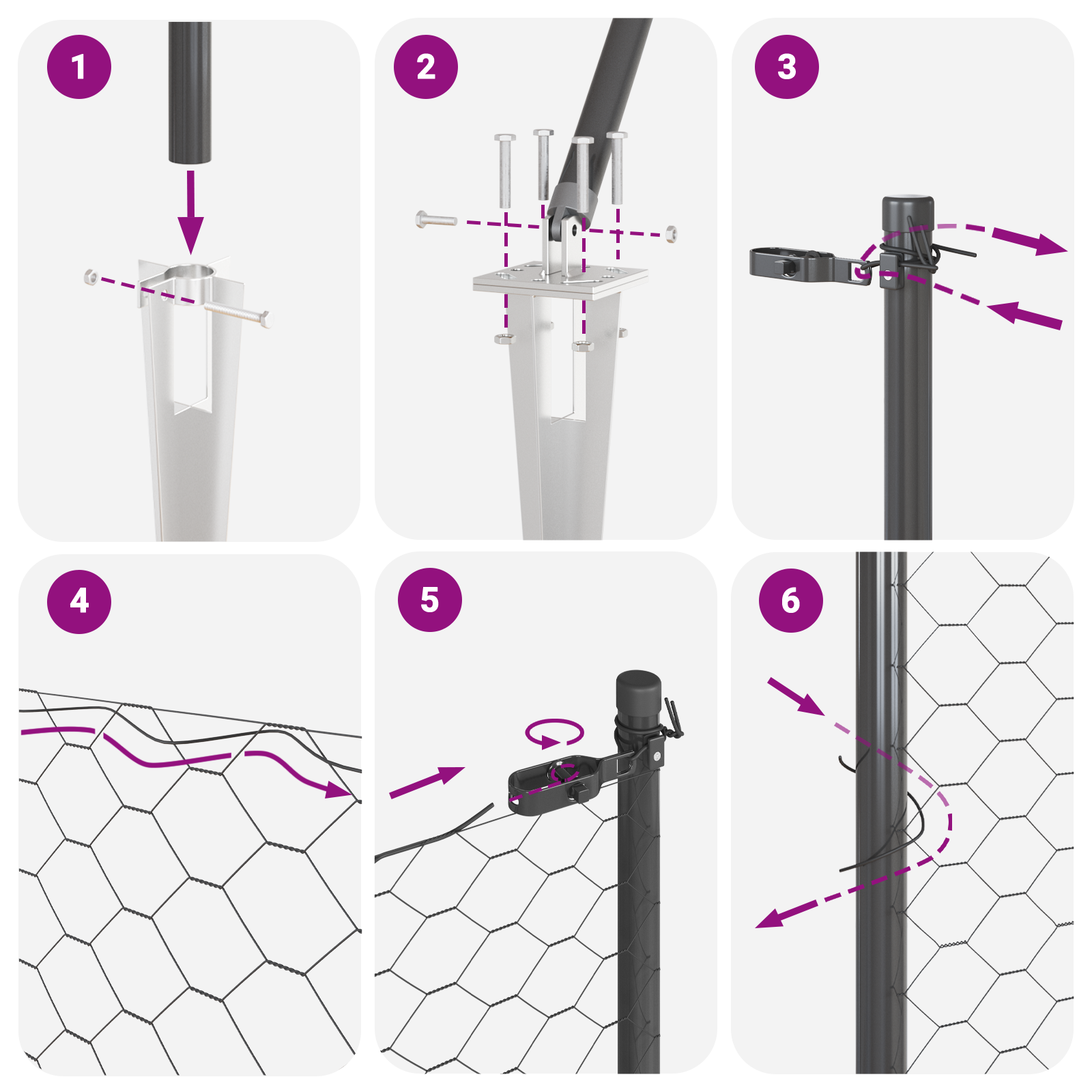 - Delivery Contains: Mesh fence roll, posts, anchors, clips, wires