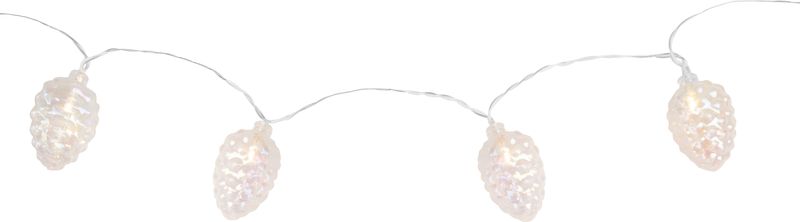 Instalatia LED decorativa cu conuri este alegerea potrivita pentru a crea o atmosfera calda si primitoare in casa, in perioada sarbatorilor. Cu 10 LED-uri cu lumina alb cald, design inspirat din natura si alimentare pe baterii, aceasta gherlanda luminoasa de Craciun este usor de amplasat in orice colt al locuintei.
