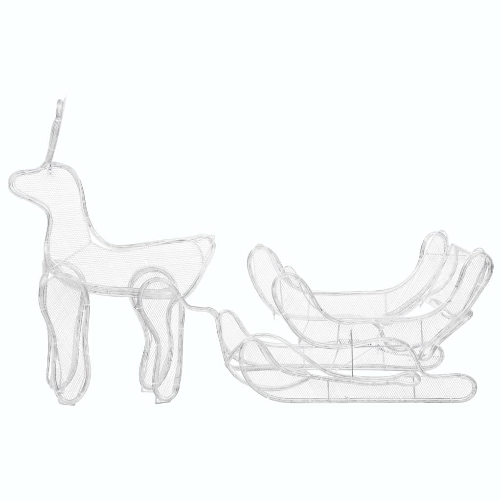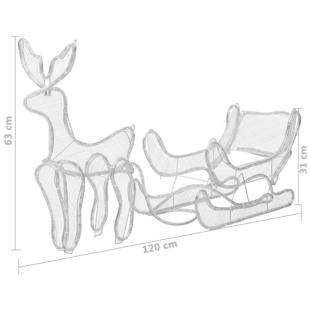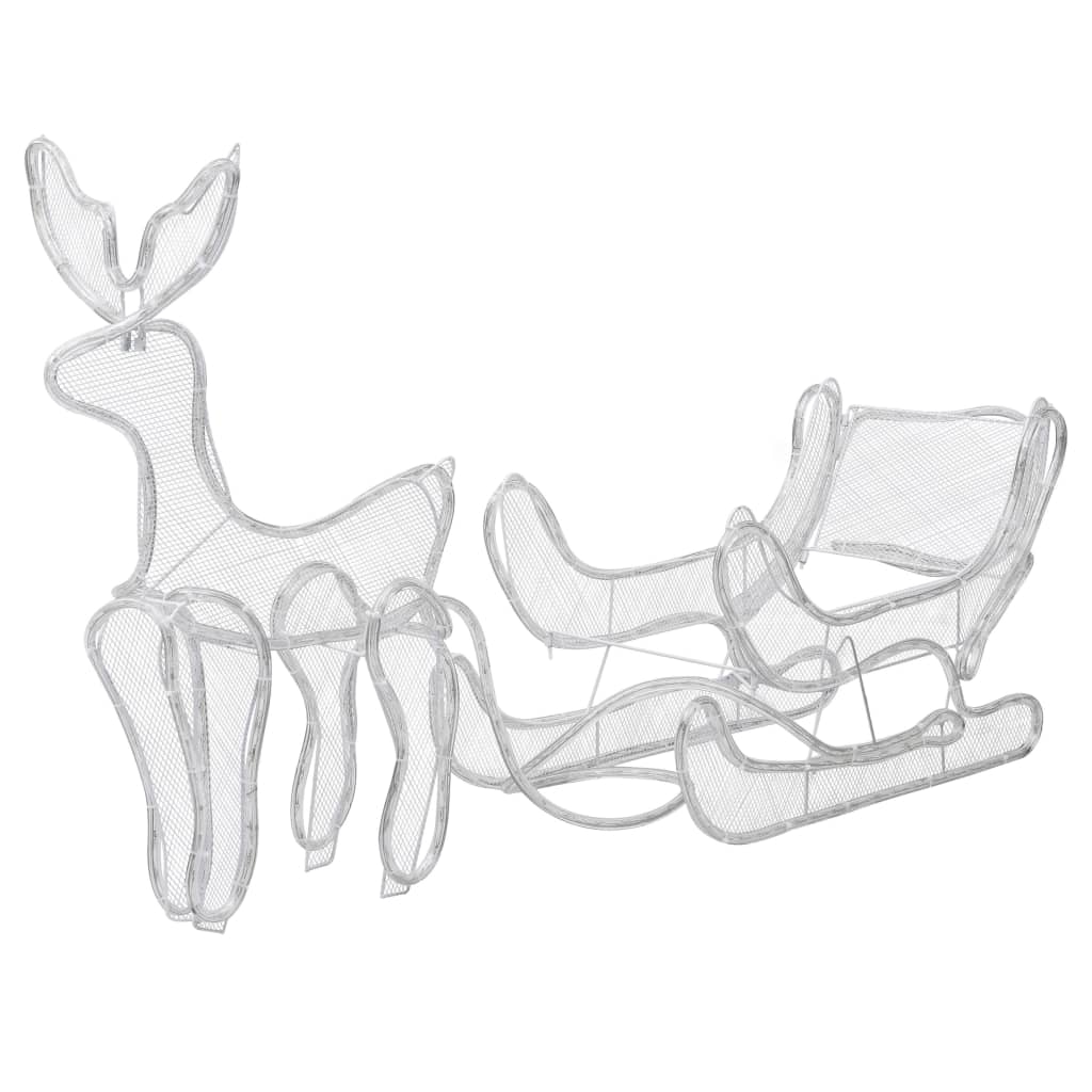 Acest atrăgător decor luminos de Crăciun, în formă de sanie cu un ren, include LED-uri și are un model tip plasă, fiind o decorațiune perfectă.