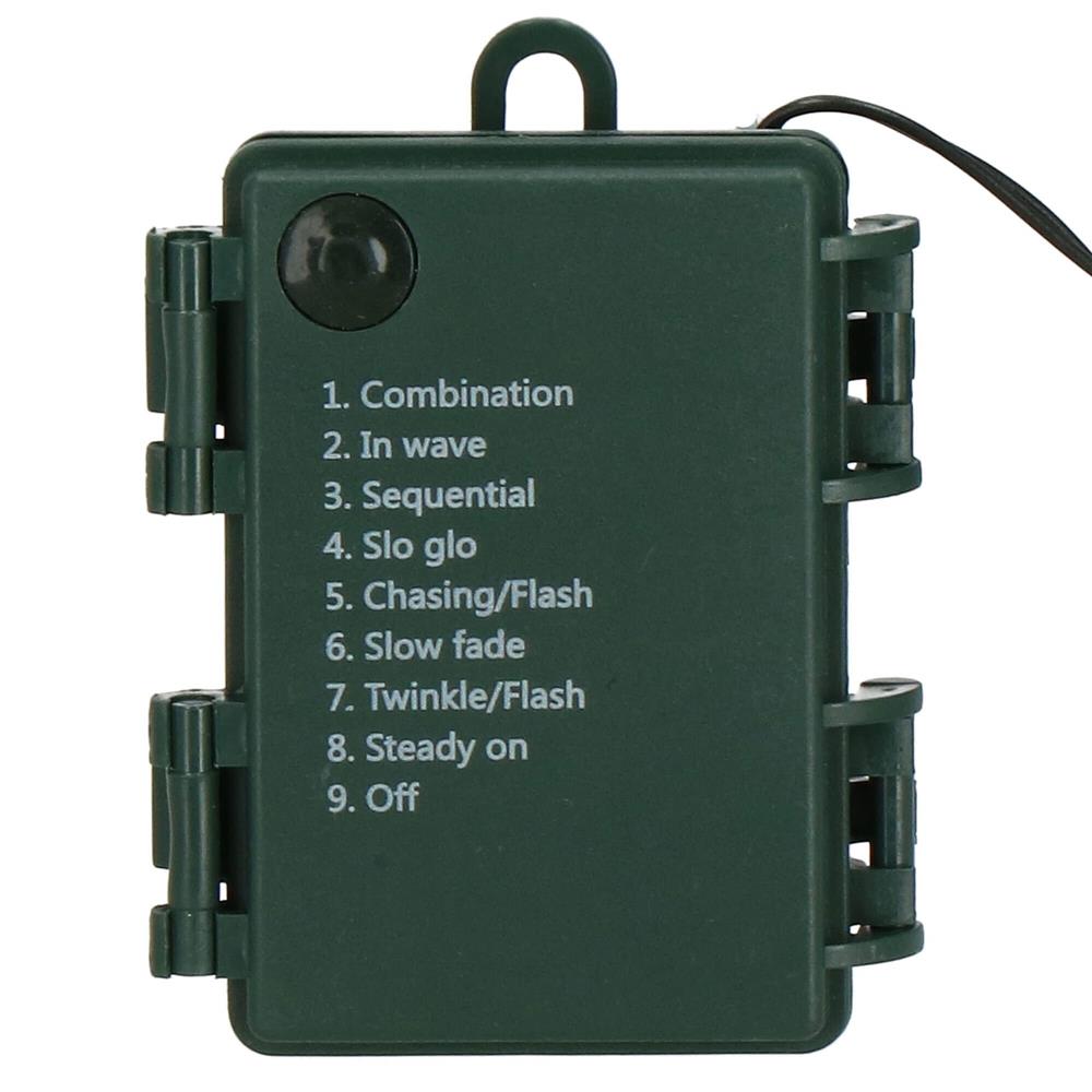 Mod de utilizare: introdu 3 baterii AA in carcasa, selecteaza unul dintre modurile de iluminare si pozitioneaza instalatia in locul dorit. Carcasa cu carlig poate fi agatata usor, iar timerul va mentine luminile aprinse 6 ore, urmate de 18 ore de pauza.