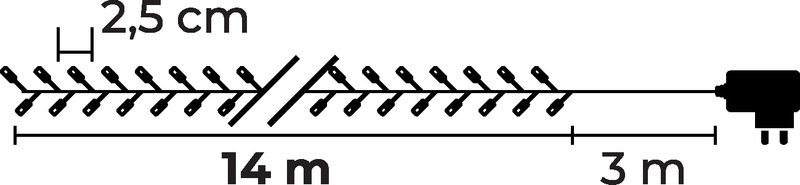 Cu o lungime de 14 m si cablu de alimentare de 3 m, instalatia este usor de montat in diverse zone. Gradul de protectie IP44 o face potrivita pentru utilizare la exterior, iar cablul verde se integreaza discret printre crengi si decoruri.