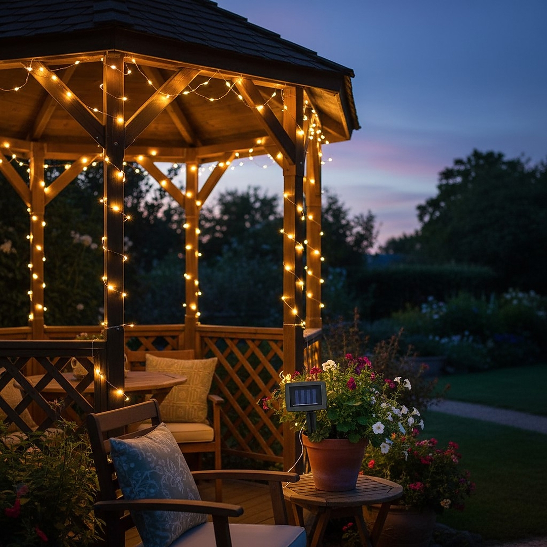 Instalatie luminoasa solara exterior 100 LED alb cald, cablu 12 m, 8 moduri iluminare, IP44, negru Household NewTrend