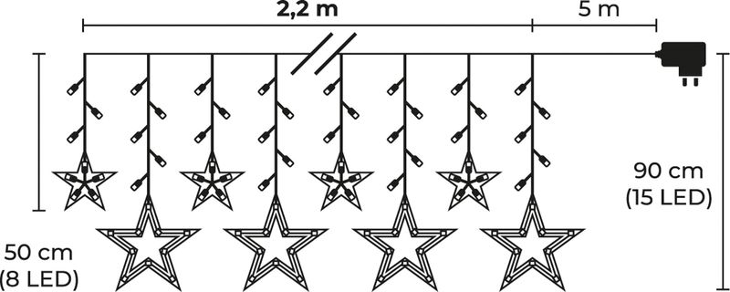 Datorita celor 8 functii de iluminare, poti alege usor atmosfera dorita: lumina constanta, clipire sau efecte dinamice. Stelele decorative ofera un aspect modern si rafinat, iar alimentarea la 230V asigura utilizare practica si stabila in sezonul sarbatorilor.