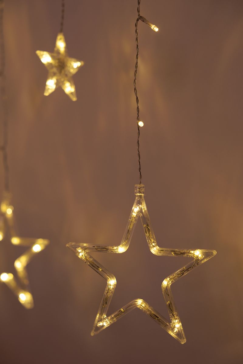 Adaugă un plus de farmec sărbătorilor cu această instalație perdea LED de Crăciun cu stele, ideală pentru decorarea ferestrelor, teraselor, balcoanelor sau fațadelor. Cele 138 LED-uri cu lumină albă caldă creează o atmosferă primitoare și elegantă, perfectă pentru decoruri festive de exterior.