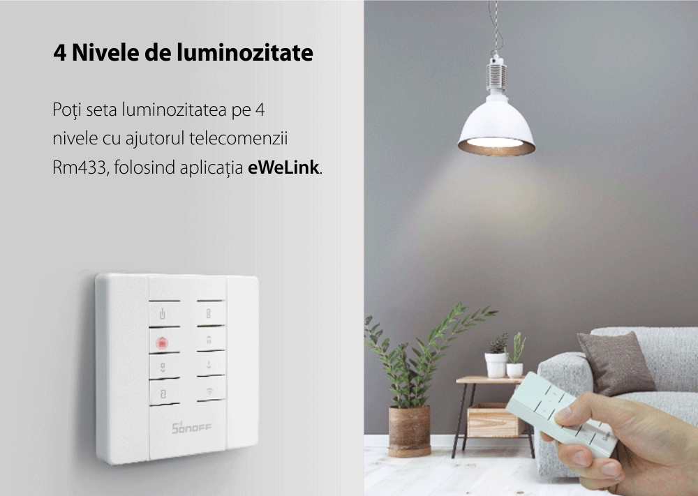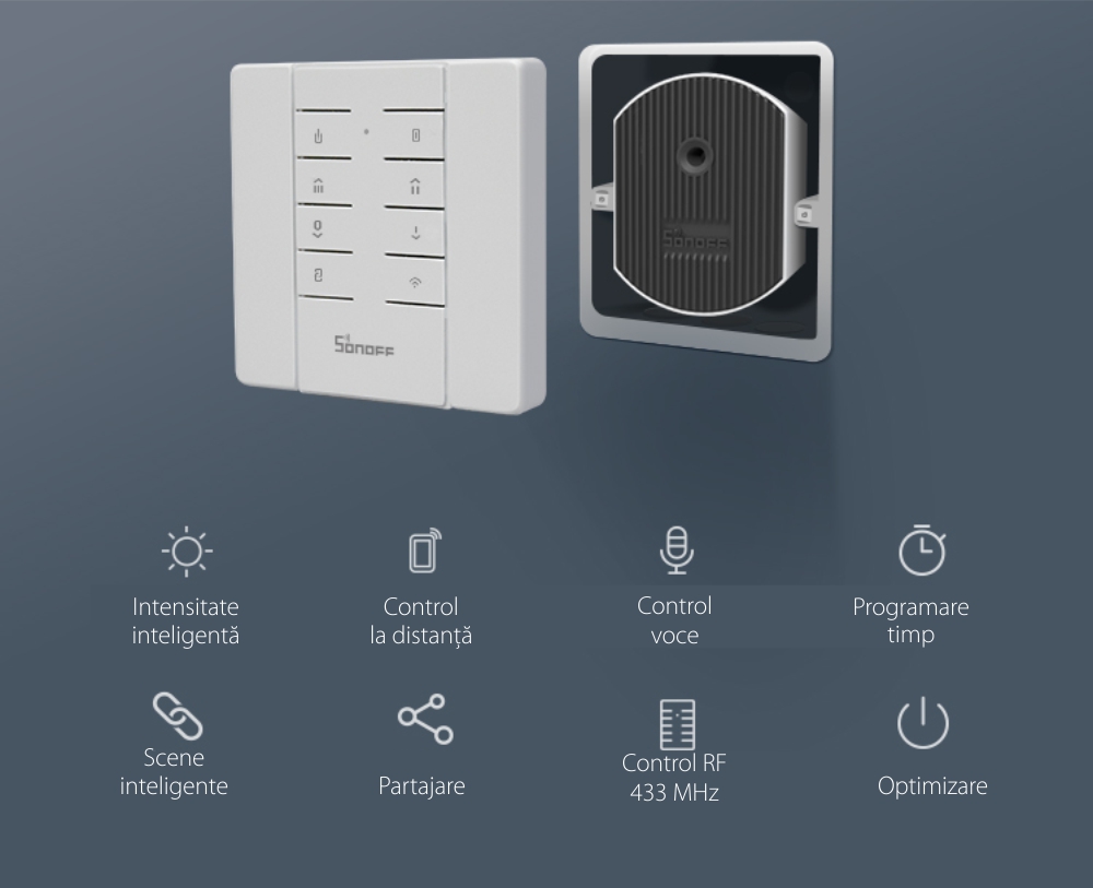 Intensificator inteligent de lumina Dimmer D1, Sonoff, Wireless, Control voce, Compatibil cu Google Home & Alexa SmartElectro IntelligentHouse