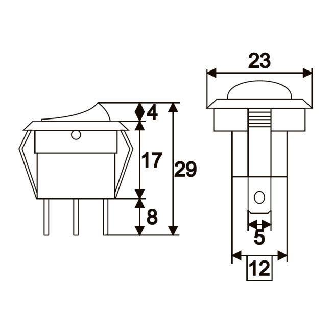 Descriere Interupator basculant 1 circuit 16A-12VDC OFF-ON,