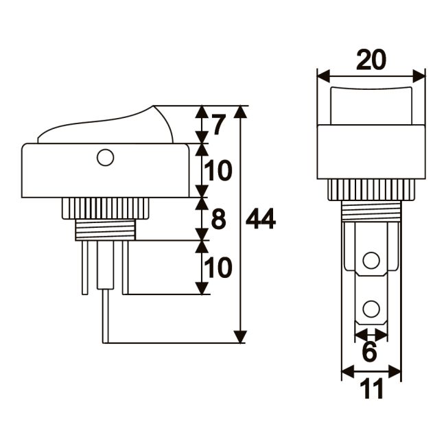 Descriere Interupator basculant 1 circuit 20A-12VDC OFF-ON,