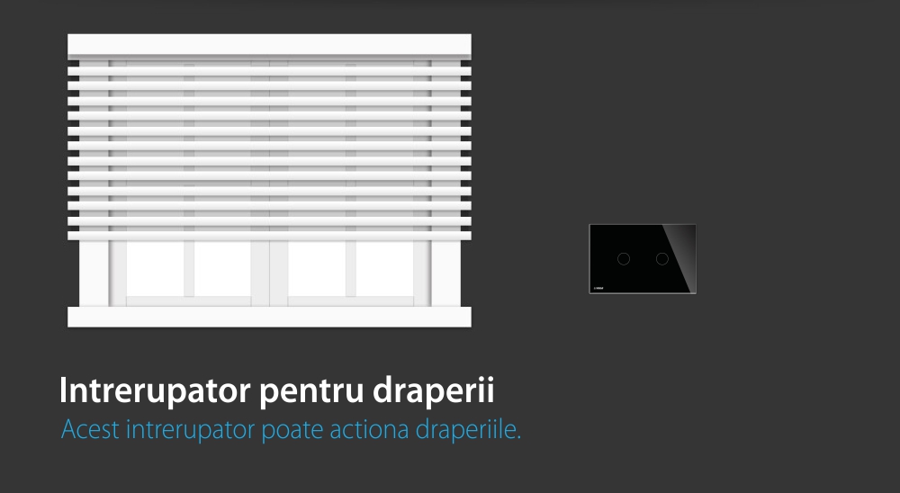 Intrerupator cu touch pentru draperie Livolo din sticla, Standard italian SmartElectro IntelligentHouse