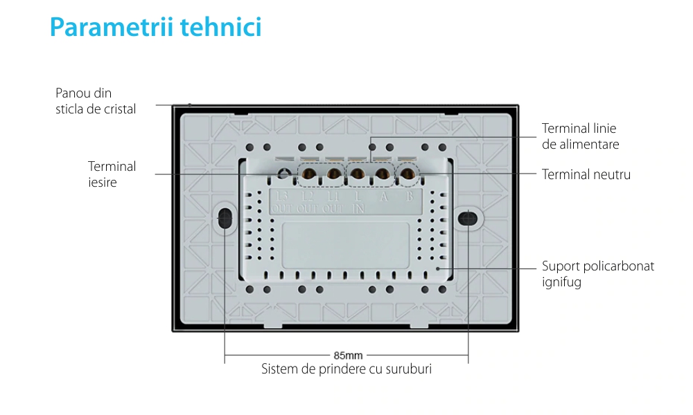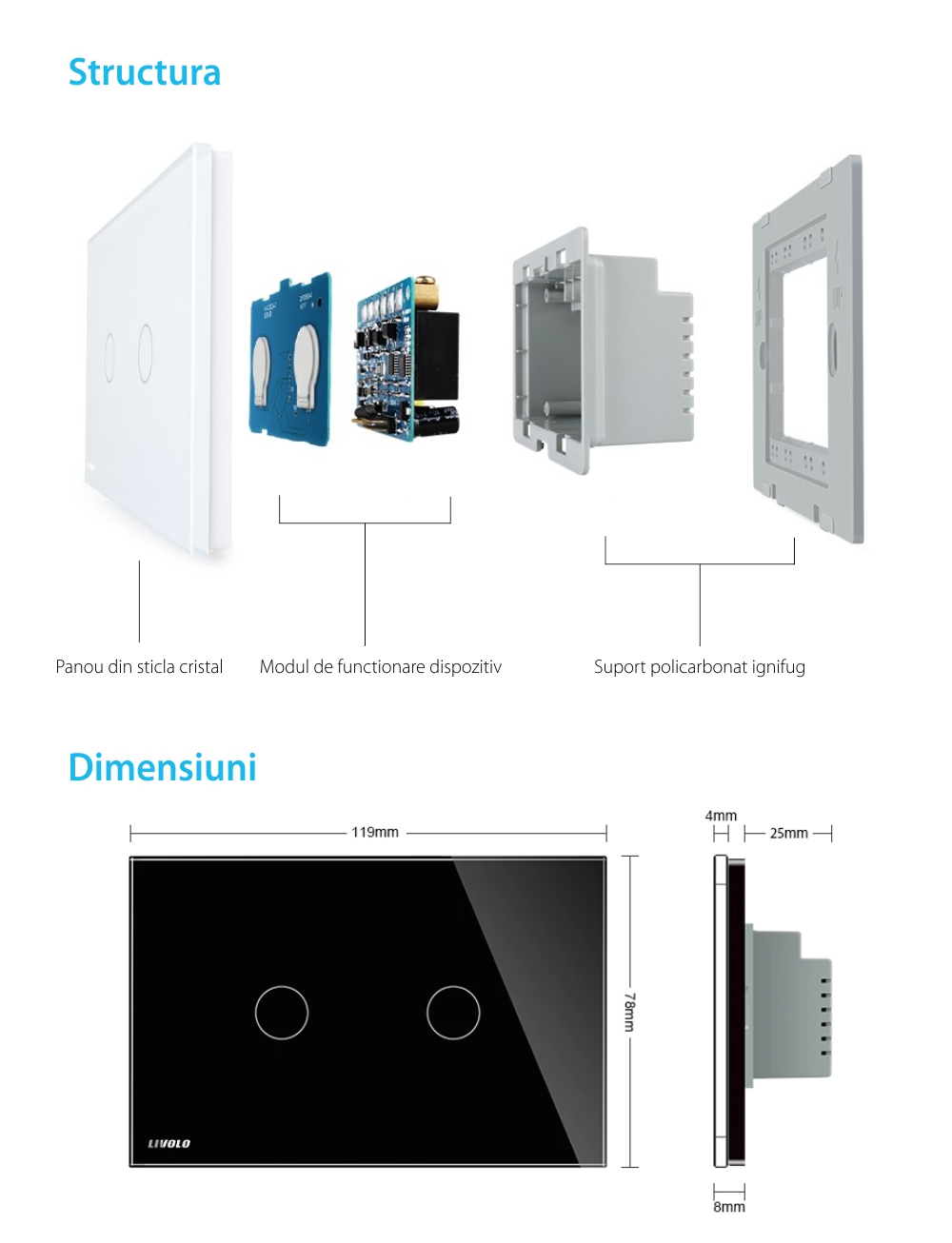 Specificatii Intrerupator touch draperie Livolo sticla, Standard