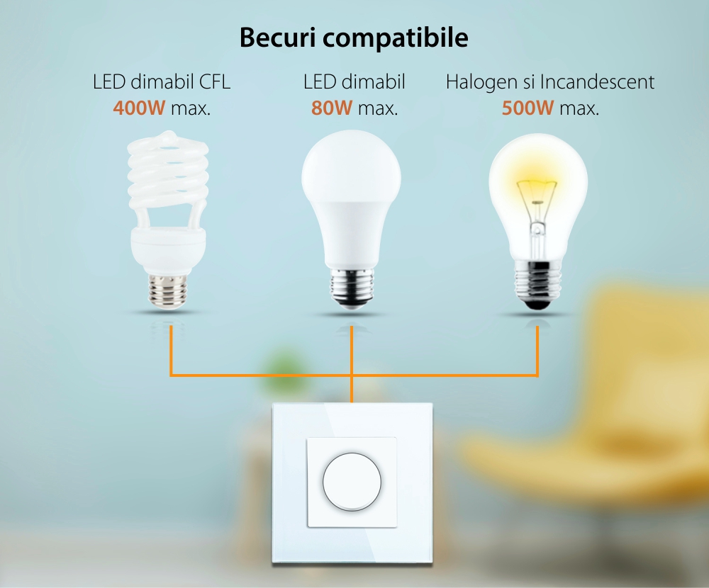 Specificatii Intrerupator Variator Mecanic LUXION Rama Sticla