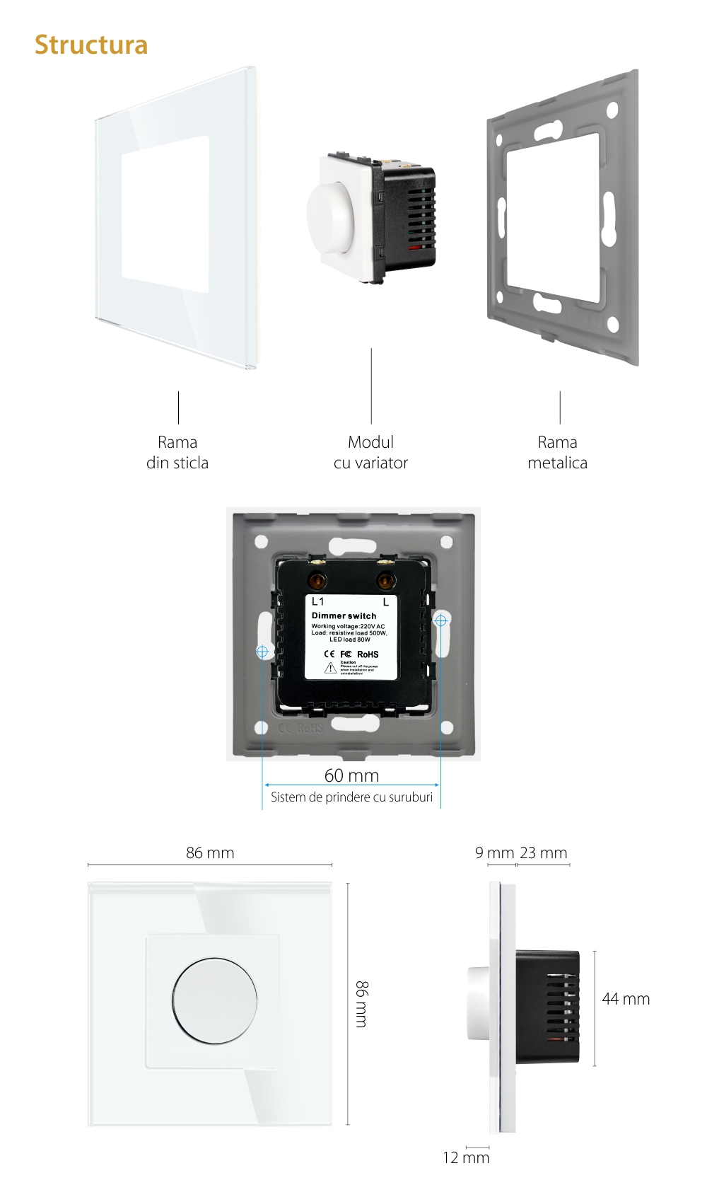 Descriere Intrerupator Variator Mecanic LUXION Rama Sticla