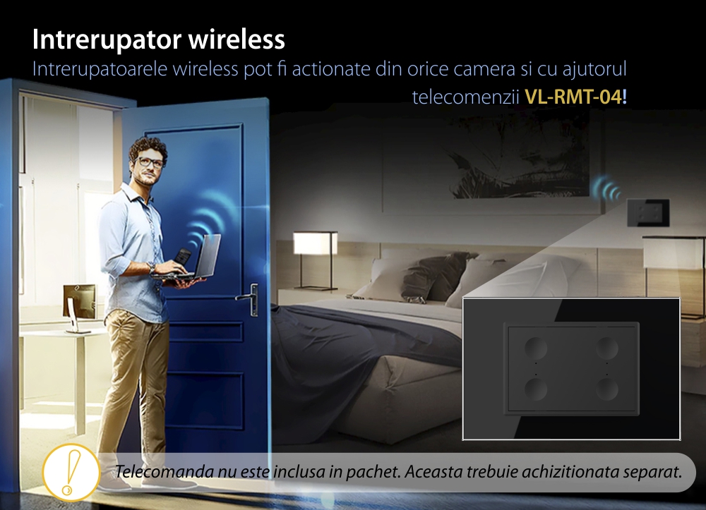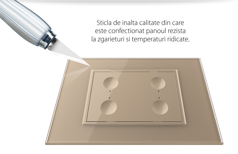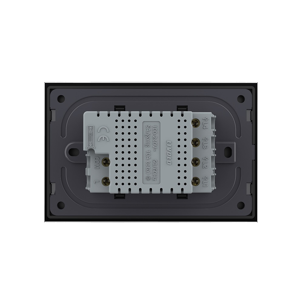 Intrerupator cvadruplu cap scara / cap cruce wireless cu touch Livolo cu rama din sticla, standard Italian, cu textura de crystal, indicator de lumina, rezistent la umiditate si la zgarieturi, rafinament la superlativ. Se pot conecta maxim 3 intrerupatoare in circuit (cap cruce) Poate fi actionat: - Direct de la intrerupator on/off prin atingere; - Din telecomanda Livolo, una din cele 2 modele: Telecomanda tip breloc Livolo Telecomanda cu Touch Screen Livolo din sticla (telecomenzile se achizitioneaza separat); - De pe smartphone cu ajutorul Hub-ului BroadLink RM4 PRO +Telecomanda Livolo prin aplicatia Ihc for Eu. - Vocal cu Google Home sau Amazon Alexa. Intermediar intre intrerupator si Google Home sau Amazon Alexa aveti nevoie de hub-ul BroadLink RM4 PRO.