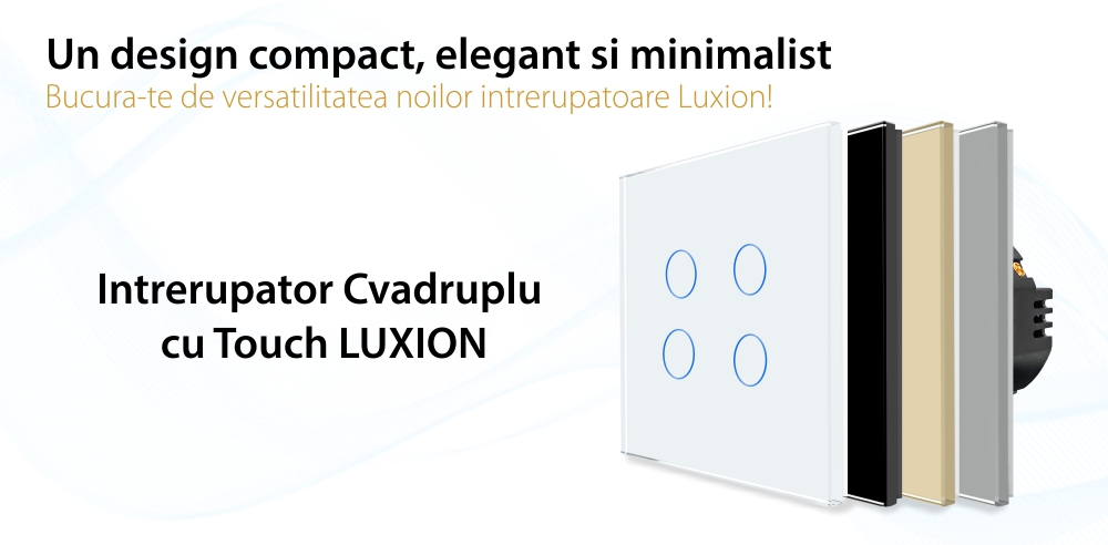 Intrerupator Cvadruplu cu Touch din Sticla LUXION, 500W SmartElectro IntelligentHouse