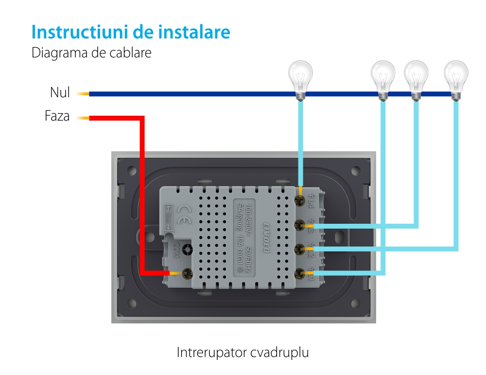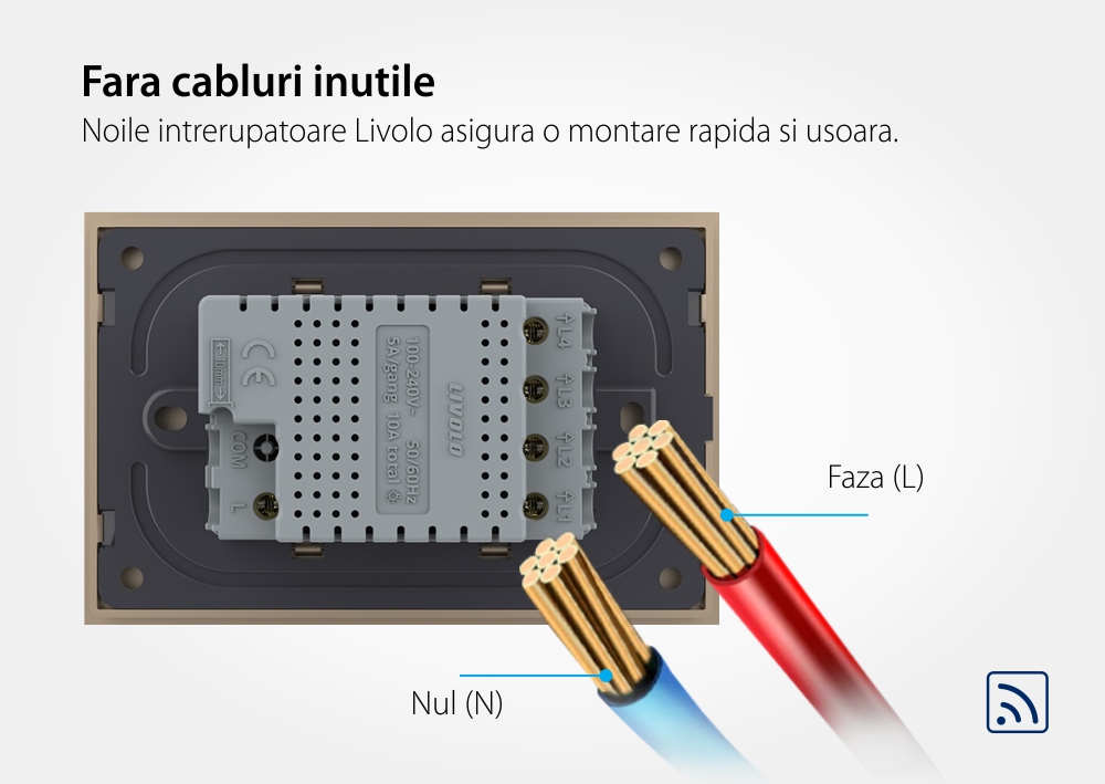 Specificatii Intrerupator cvadruplu wireless touch Livolo rama
