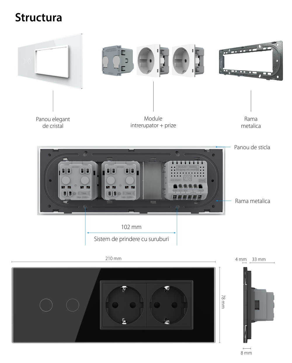 Specificatii Intrerupator Dublu + 2 Prize LIVOLO