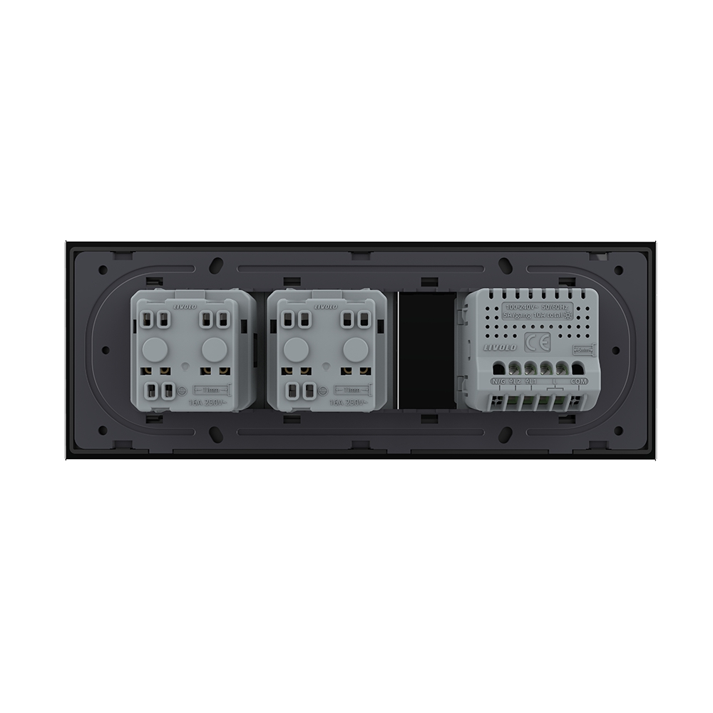 Intrerupator dublu + doua prize Livolo din sticla, standard italian, cu 6 module, din sticla crystal securizata, termorezistenta, compatibil doar cu modulele Livolo. Este rezistent la zgarieturi, umezeala, praf si ofera casei tale un plus de eleganta si rafinament.