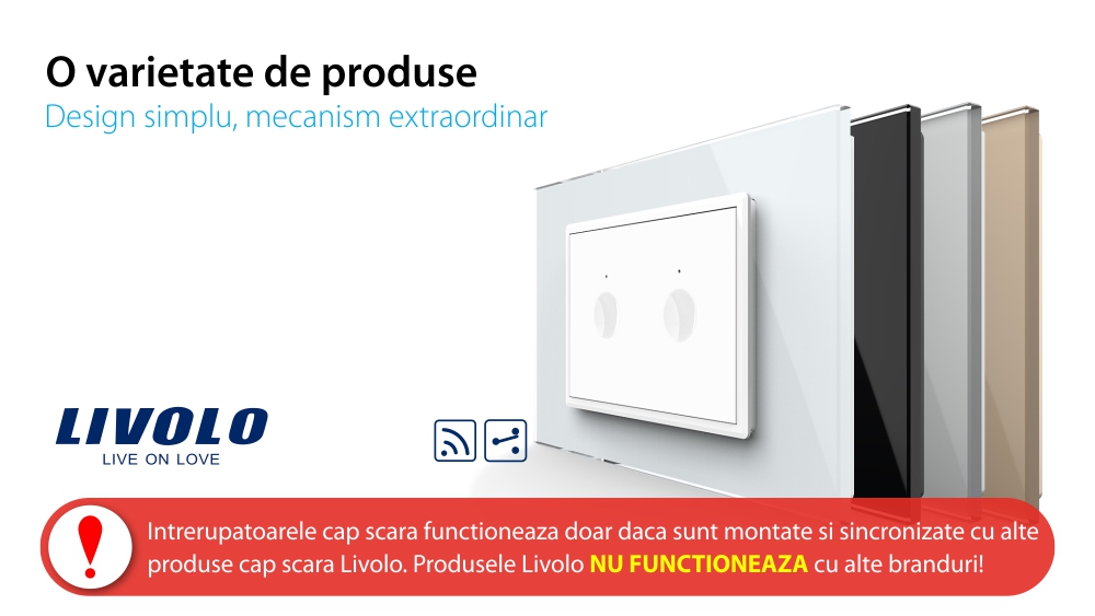 Intrerupator dublu cap scara / cap cruce wireless cu touch Livolo cu rama din sticla, standard Italian - Serie noua SmartElectro IntelligentHouse