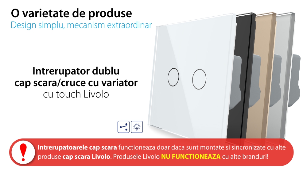 Intrerupator Dublu Cap Scara / Cruce cu Variator si Touch LIVOLO - Serie Noua SmartElectro IntelligentHouse