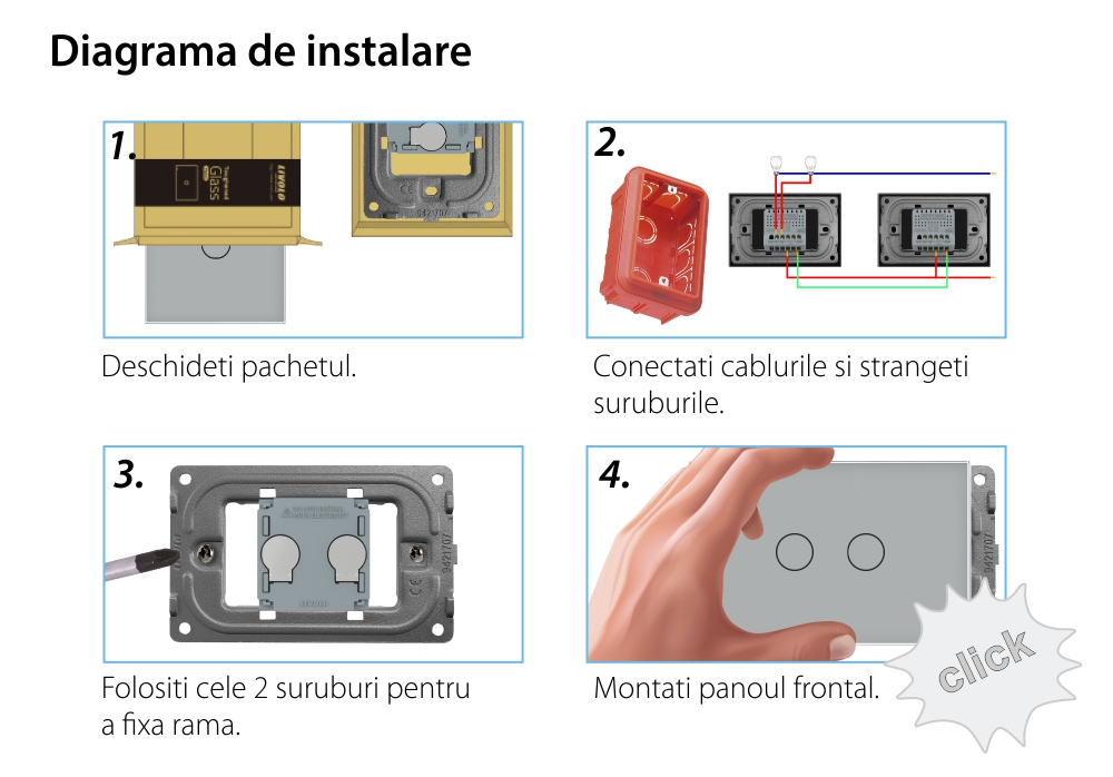 Intrerupator Dublu Cap Scara / Cruce Wi-Fi cu Touch LIVOLO, standard italian – Serie Noua SmartElectro IntelligentHouse