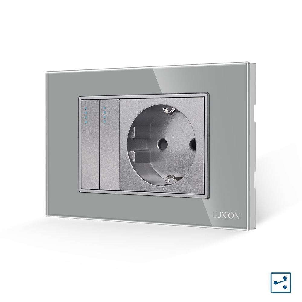 Intrerupator Dublu Cap Scara + Priza cu Rama din Sticla LUXION, Standard Italian, 3M SmartElectro IntelligentHouse
