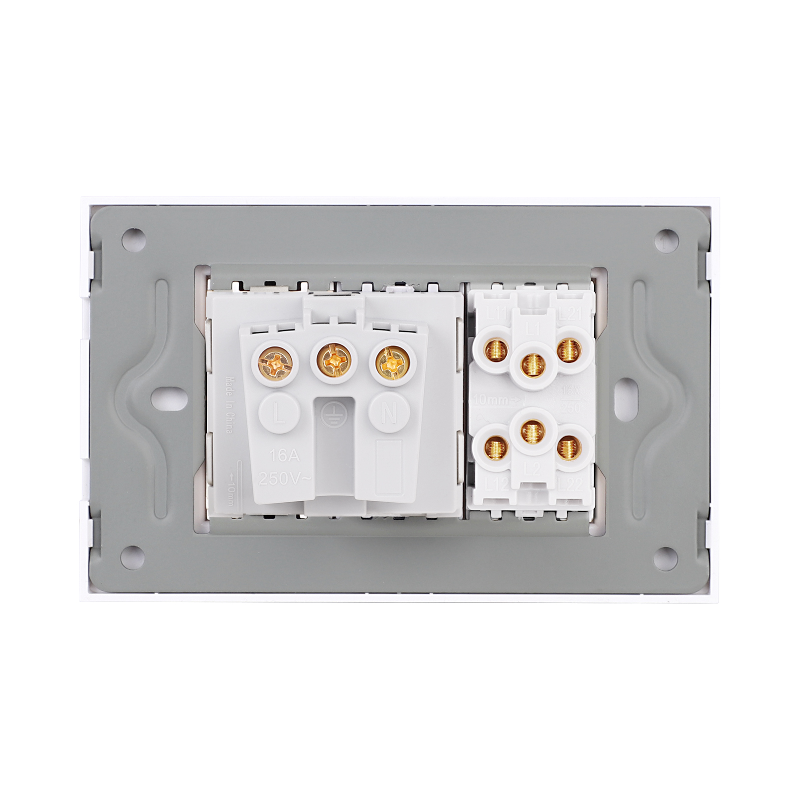 Intrerupator Dublu Cap Scara + Priza cu Rama din Sticla LUXION, Standard Italian, 3M SmartElectro IntelligentHouse