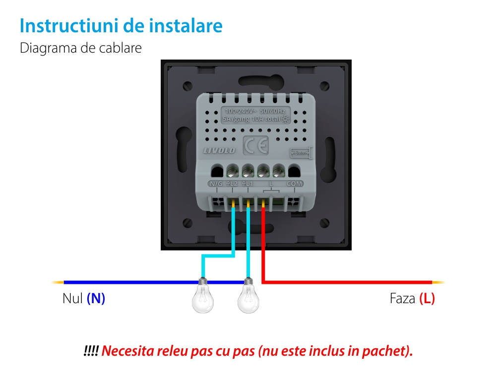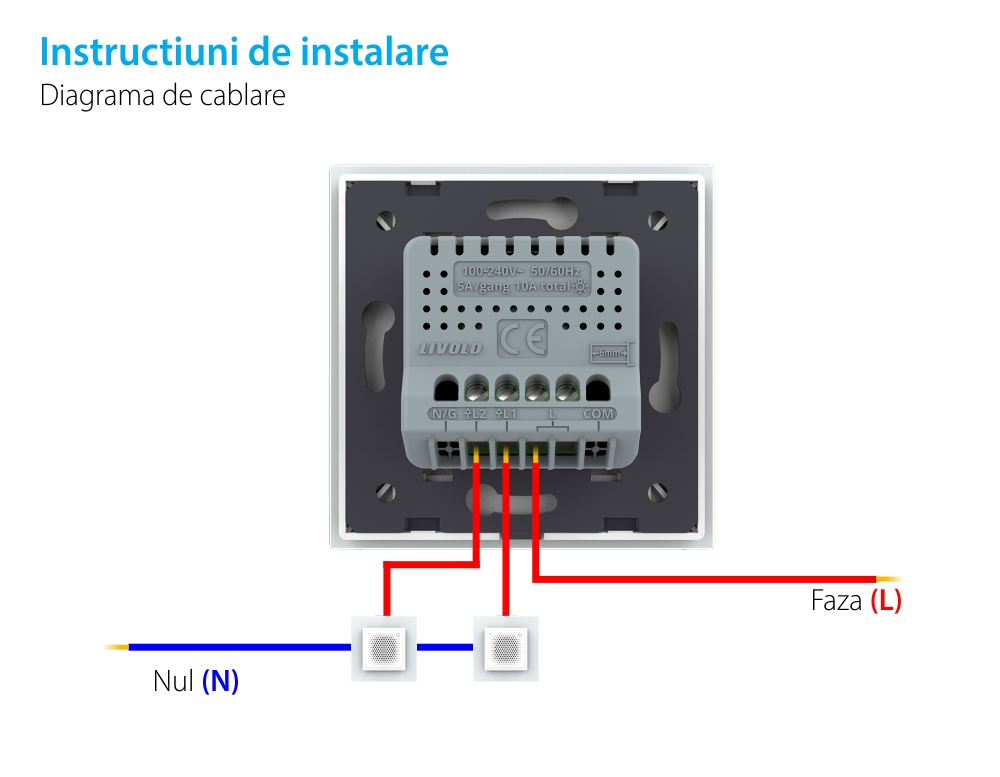 Intrerupator Dublu cu Revenire / Reset cu Touch LIVOLO - Serie Noua SmartElectro IntelligentHouse