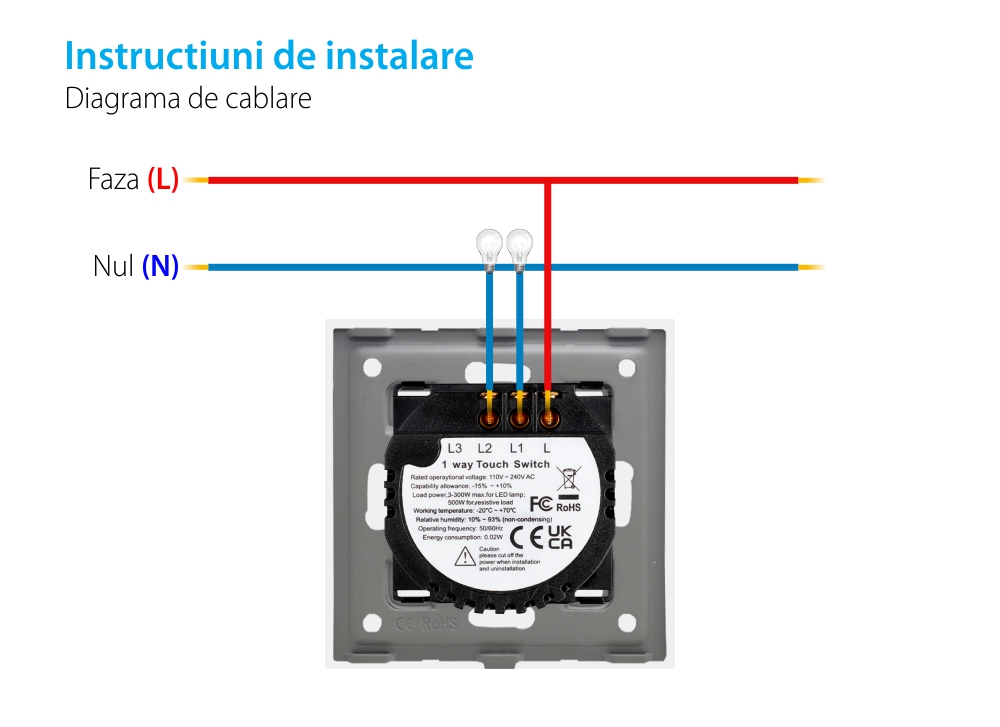 Specificatii Intrerupator Dublu Touch Sticla LUXION, 500W